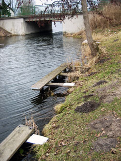 ![]() Die besagten Stege in Liebenwalde. Auch auf der gegenüberliegenden Uferseite kleben überall diese weissen Papiere. |